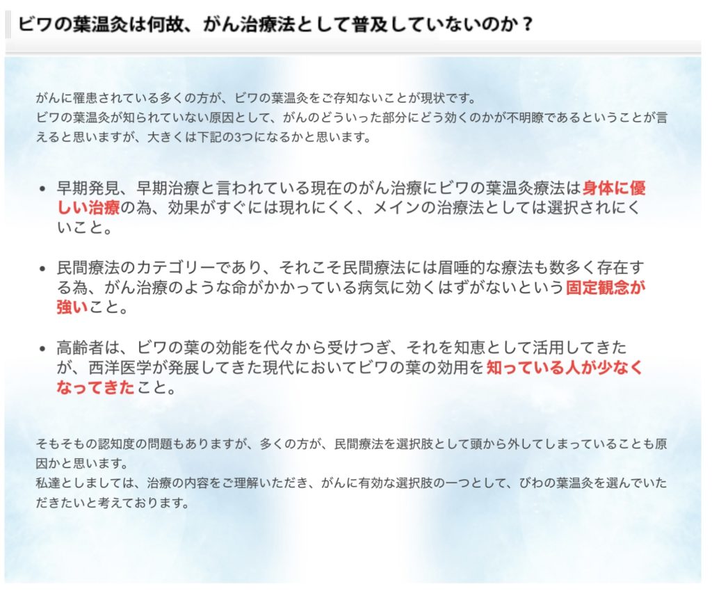 ビワの葉温灸が普及しない理由